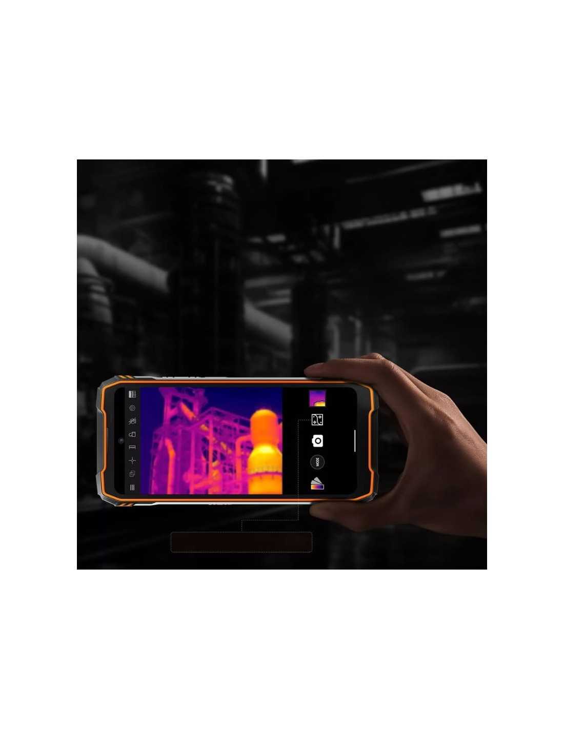 La pantalla LCD IPS de 6,78 pulgadas FHD+ con tasa de refresco de 120 Hz ofrece imágenes nítidas y brillantes, protegidas con Corning Gorilla Glass 5 y certificaciones robustas como MIL-STD-810H, IP68 e IP69K. La cámara frontal de 50 MP con sensor Samsung ISOCELL JN1 y la cámara trasera principal de 64 MP cuentan con una cámara térmica FLIR Lepton 3.5 para funciones únicas.