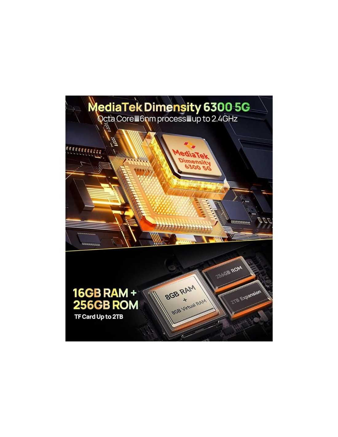 Procesador Octa-Core MediaTek Dimensity 6300 (6 nm) con velocidades de hasta 2.4 GHz, garantizando un rendimiento sólido para tus aplicaciones y juegos.
