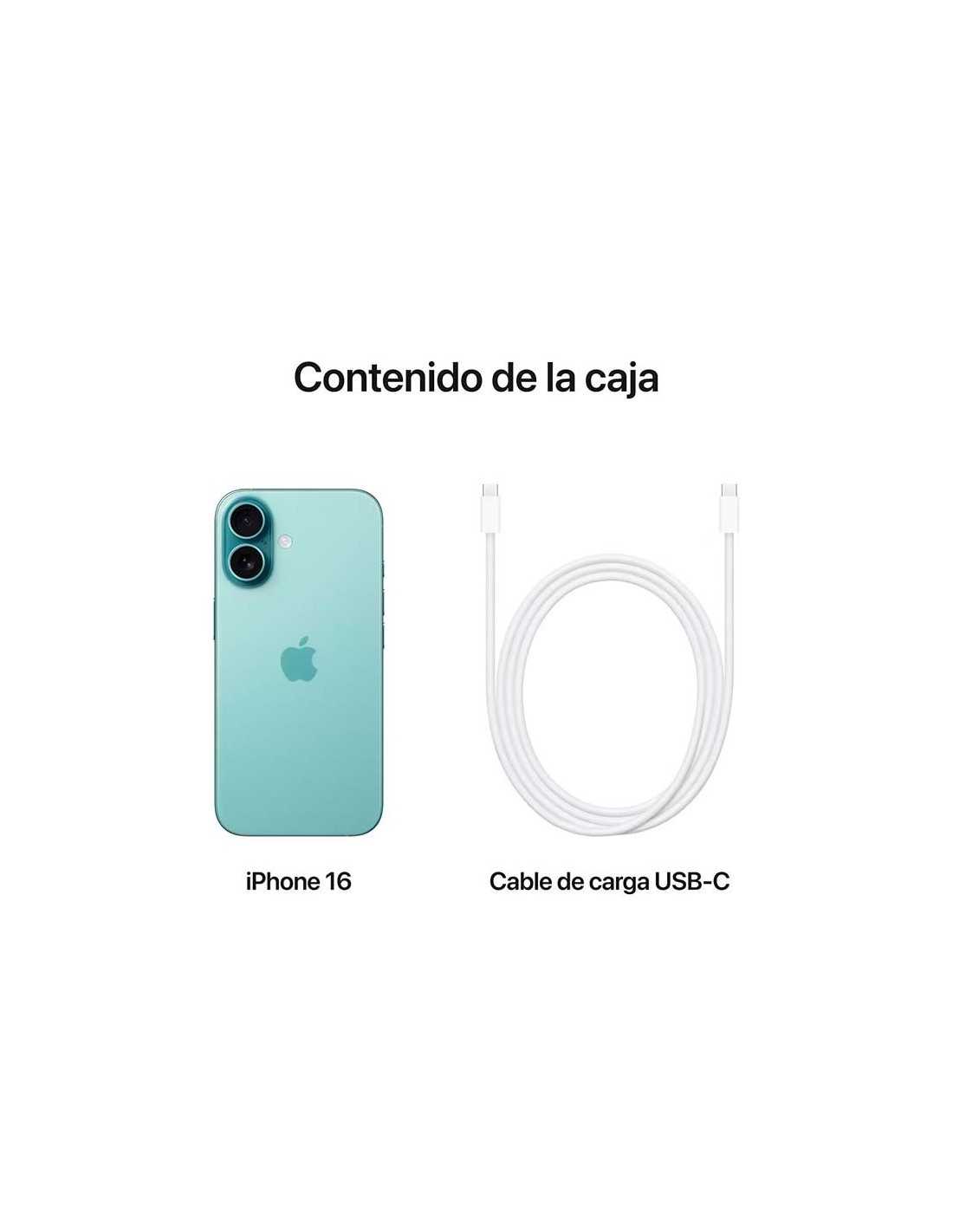 | Incluido | 1x Apple iPhone 16 5G 512GB Verde, 1x Cable de carga USB-C (1 m) |