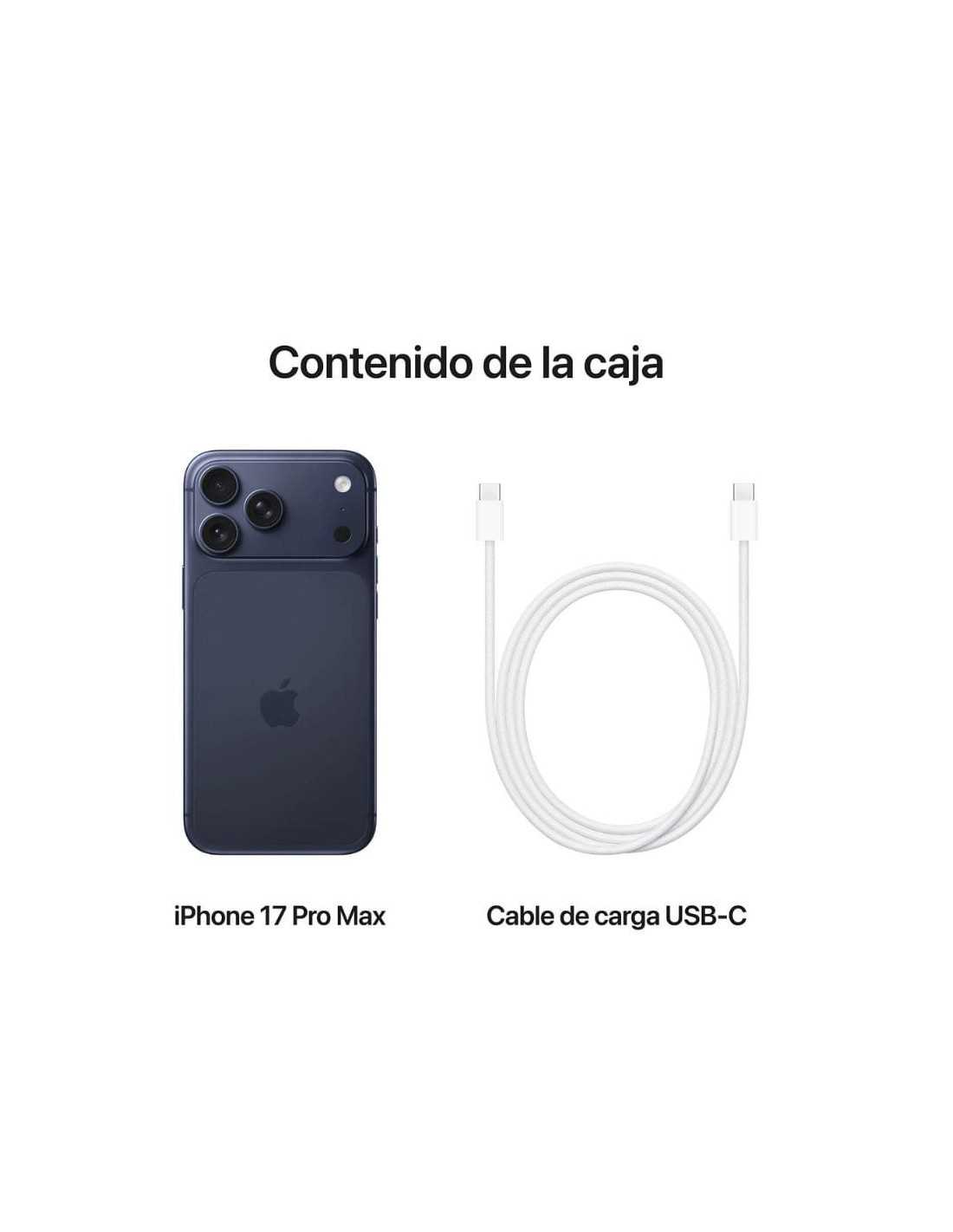 | Incluido | Apple iPhone 17 Pro Max 1 TB, Cable USB-C a USB-C, Documentación, Herramienta SIM. |