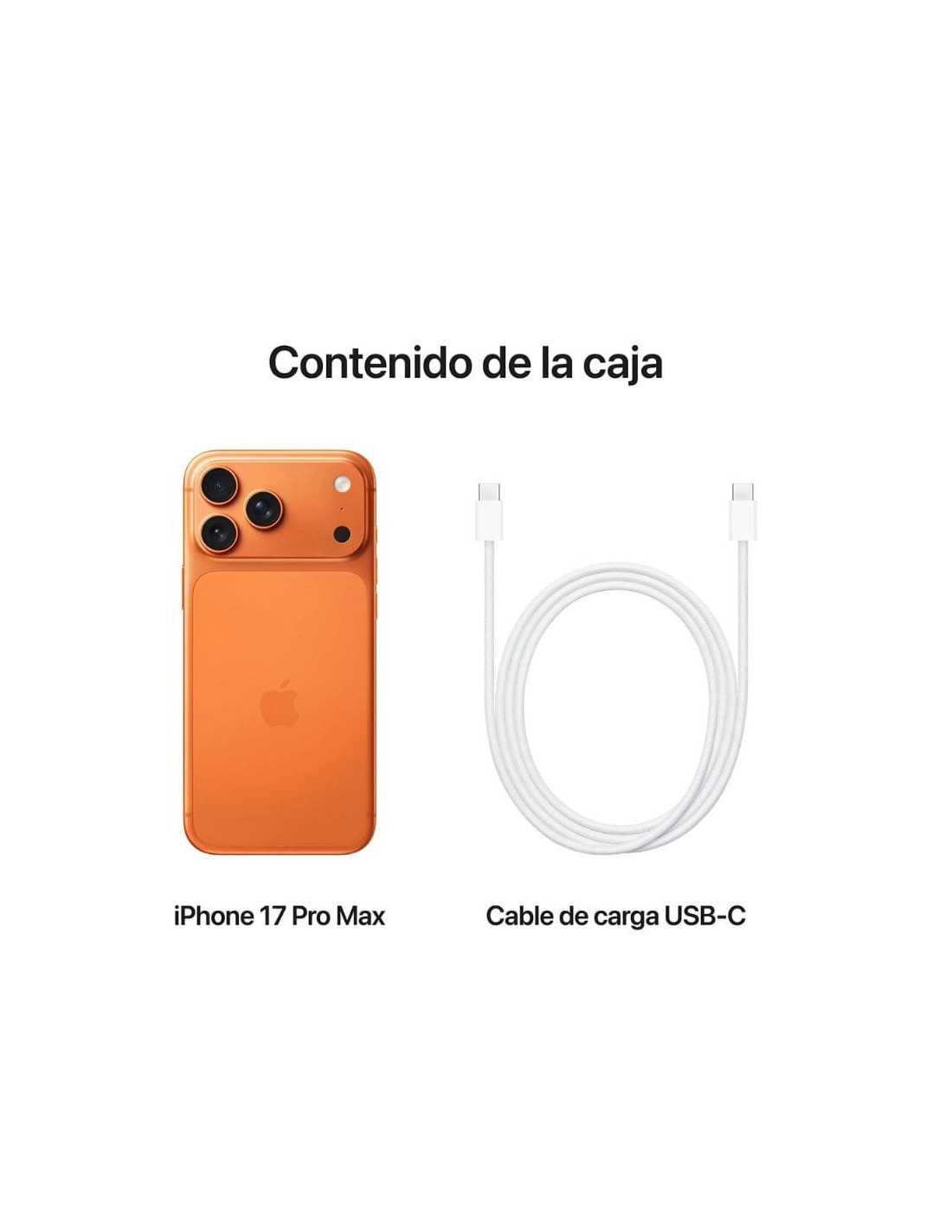 | Incluido | 1x iPhone 17 Pro Max 512 GB, Cable USB-C a USB-C, Documentación, Herramienta de extracción de SIM. (No incluye cargador AC). |
