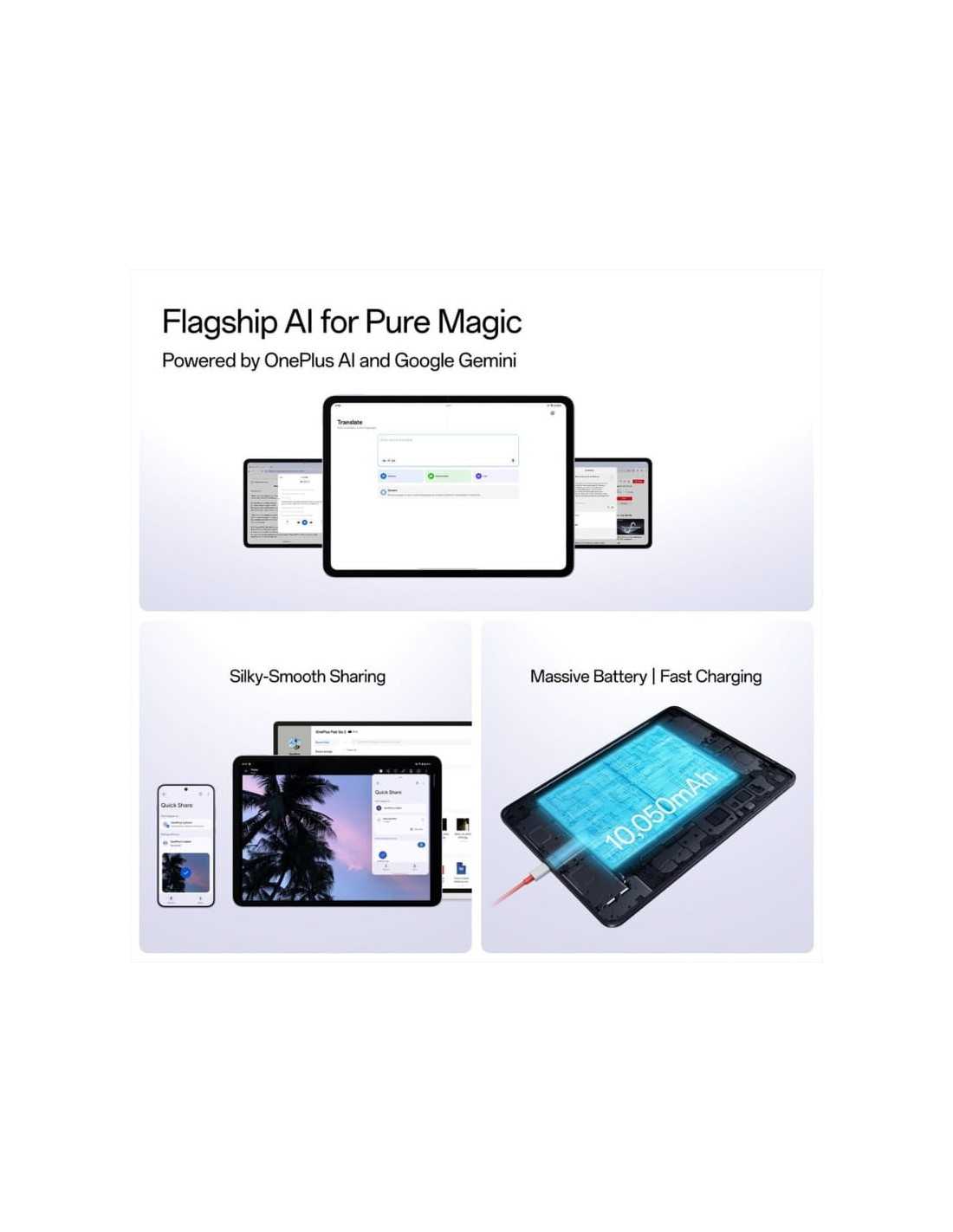 Con 256 GB de memoria interna, tienes el doble de espacio para guardar películas, documentos y apps pesadas. Su batería de 10050 mAh te garantiza autonomía para maratones de series, y cuando necesites recargar, la tecnología 33W SUPERVOOC lo hace volar. Incluso puedes usarla como powerbank gracias a su carga inversa.